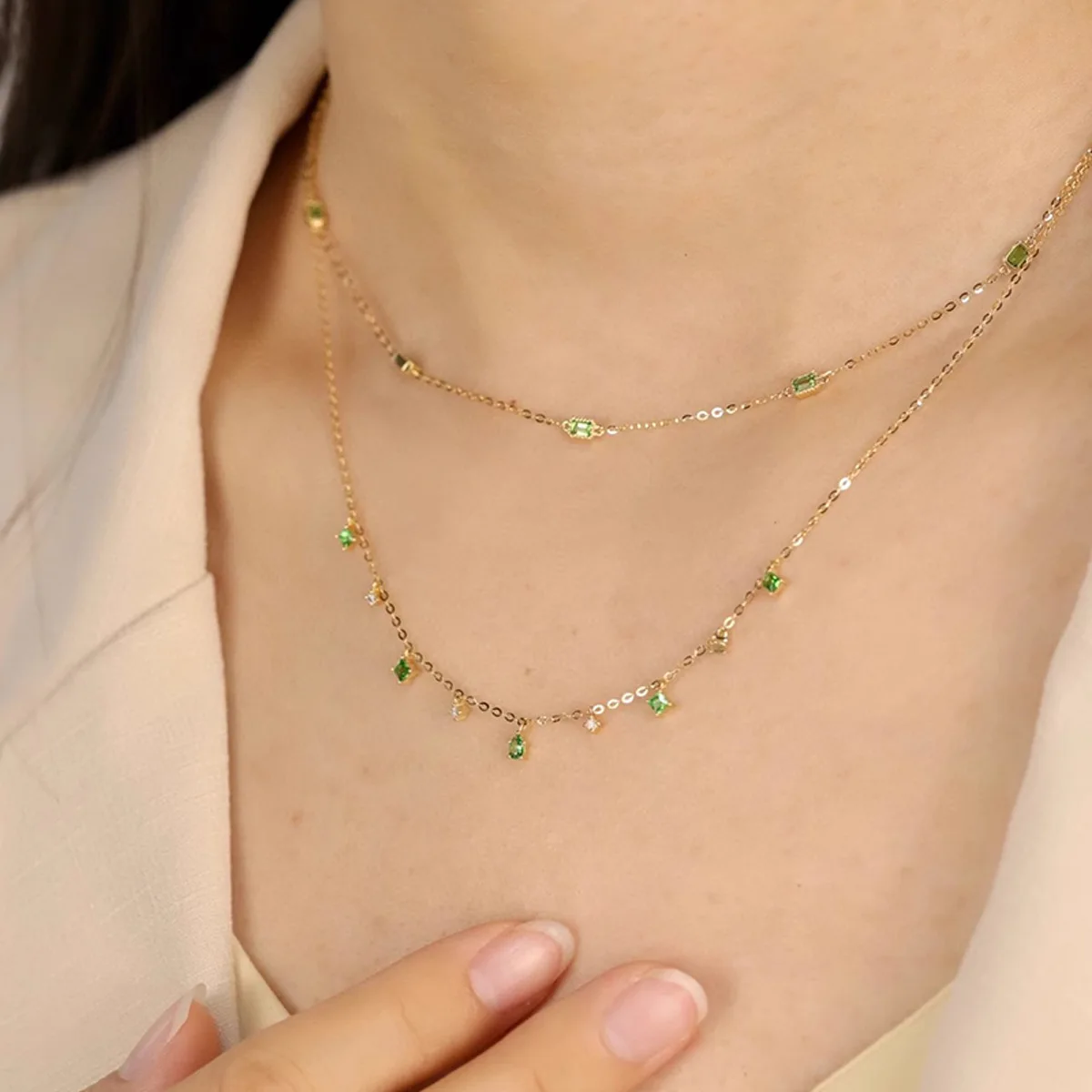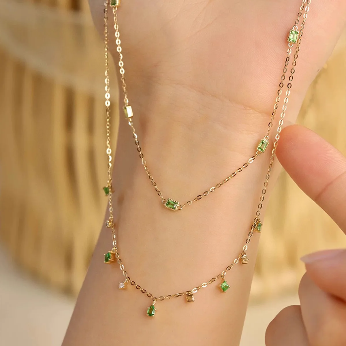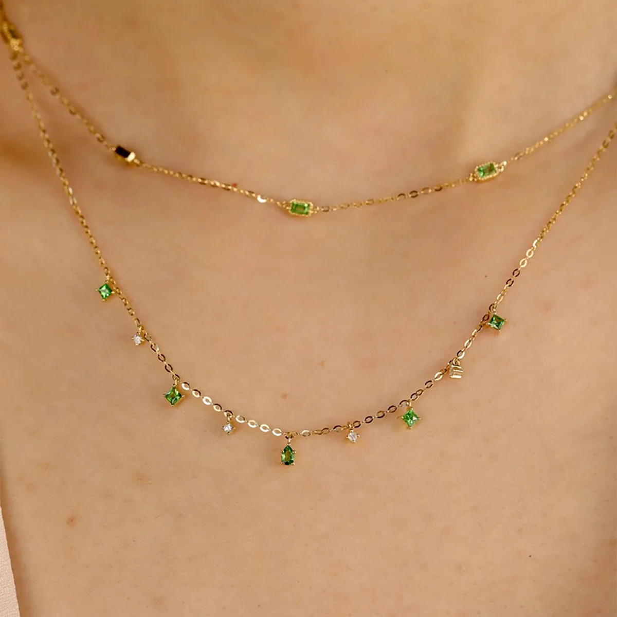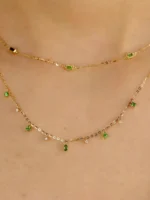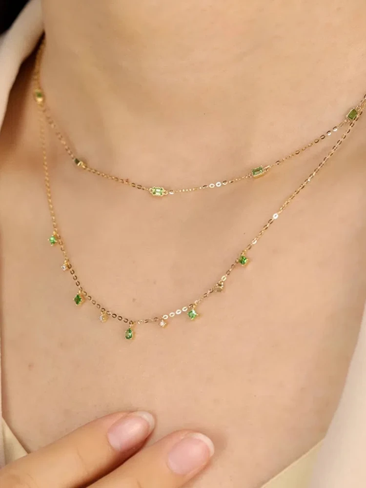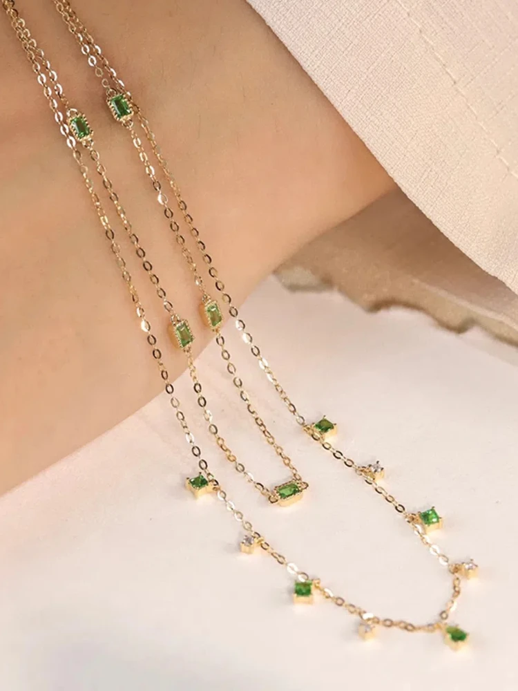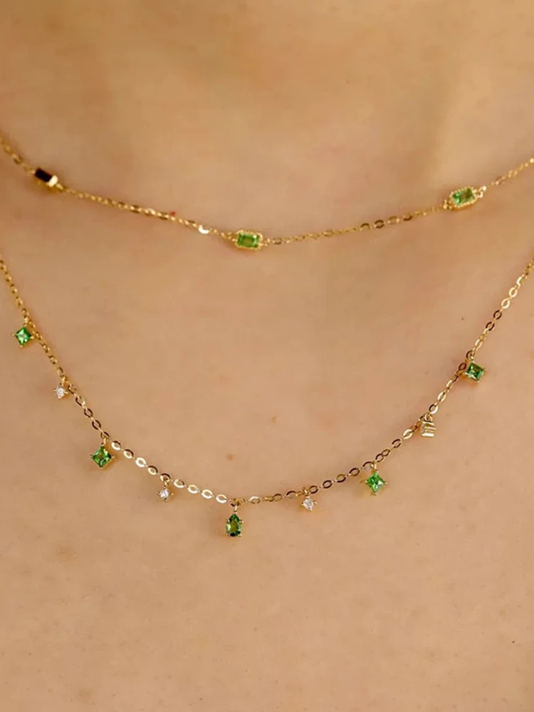 S925 فضة المرأة الأخضر الزركون طبقة مزدوجة قلادة مجوهرات الفرنسية للنساء ارتداء اليومي هدايا حفلة عطلة