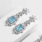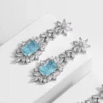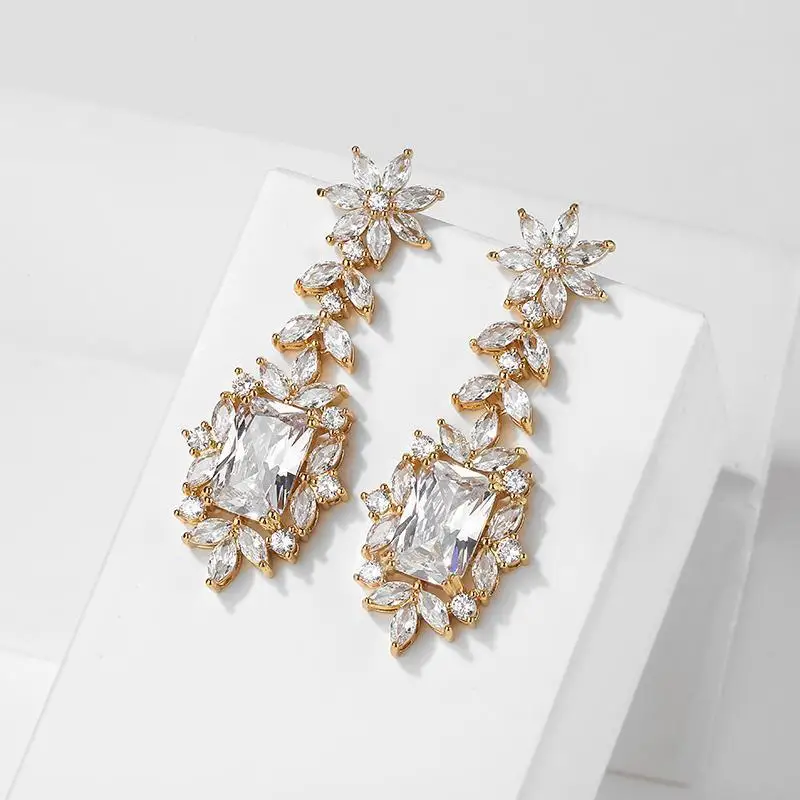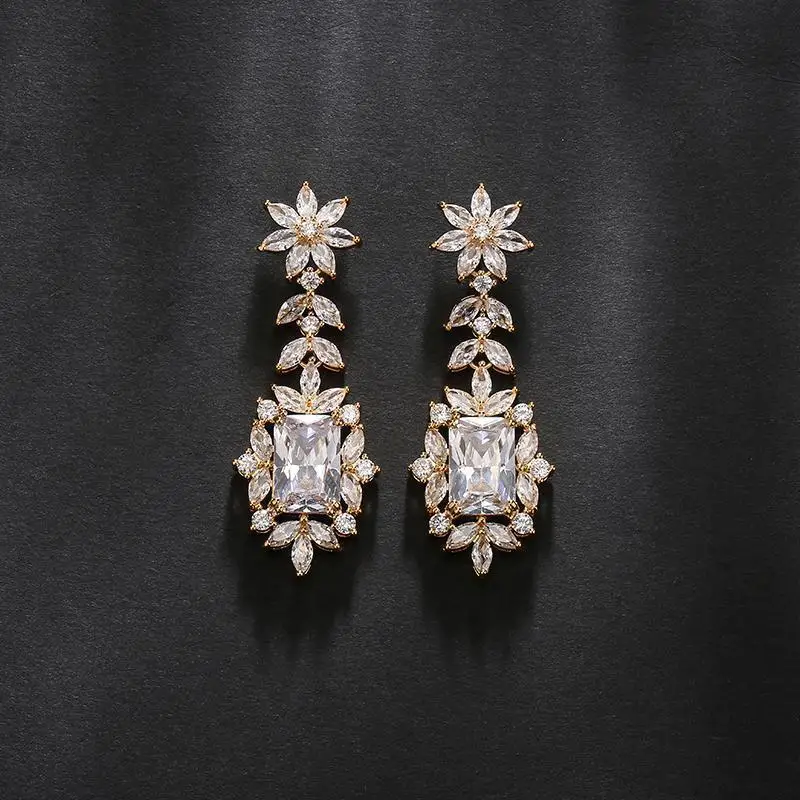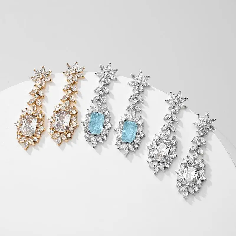 4 مراجعات لـ Uilz الفاخرة ساحة الأزرق مكعب زركونيا إسقاط أقراط للنساء مزاجه القرط العروس الزفاف مجوهرات الخطوبة