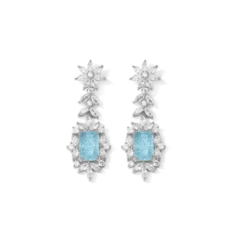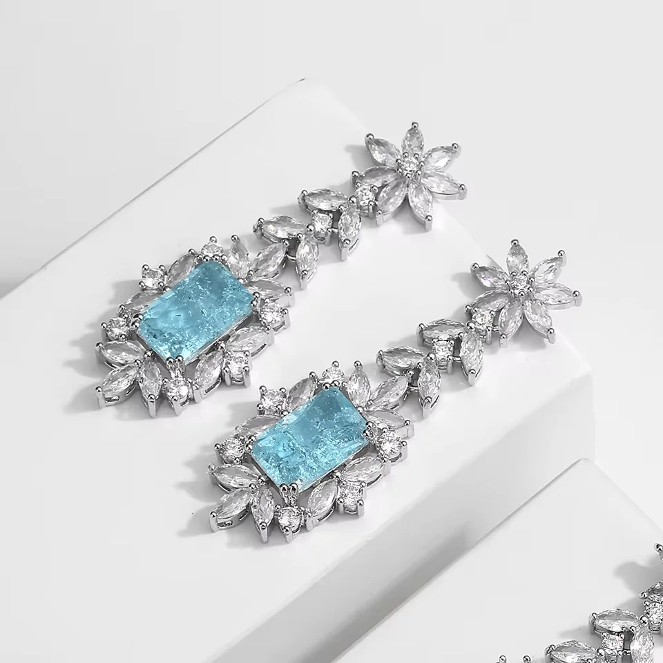 Uilz الفاخرة ساحة الأزرق مكعب زركونيا إسقاط أقراط للنساء مزاجه القرط العروس الزفاف مجوهرات الخطوبة